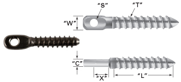 A convenient, easy-to-install means for attaching an Adjust-A-Jaw® or Adjust-A-Body® tensioner, CAI Fixed Jaw, Toggle Jaw system, or Push-Lock® fitting with threaded eye to a wood post. |