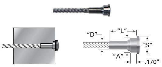 Often used in combination with the Invisiware® receiver, this fitting is also hidden inside the end post with only the head exposed on the outside of the post. When installed, it looks the same as the Invisiware® receiver except it costs much less.