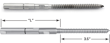 The Lag Stud has been developed for direct attachment to wood surface with a minimum of 3" of wood blocking for full thread engagement. Holes are simply pre-drilled into the connecting wood surface and the lag is threaded into the hole.