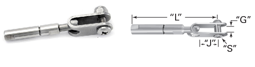 This fitting can be used with any tensioning device on the other end...but when used with our swageless tensioners; both ends can be put on the cable by hand without any swaging or special tools.
