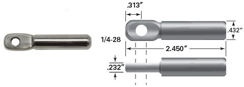 The Push-Lock® with threaded eye fittings are used on angled or level runs. They mount to Lag Eyes or Threaded Tabs in the end post. For wood applications, Also order P/N 20HLE4 Lag Eye and for Metal applications, order P/N 20HTT4 Threaded Tab. |
