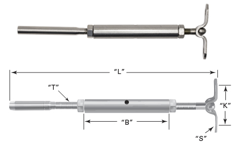 | Step 4 - | Attach completed first fitting at point of beginning and run cable to the other end making sure to adjust all turnbuckles, etc. to 2/3 open position. | ||