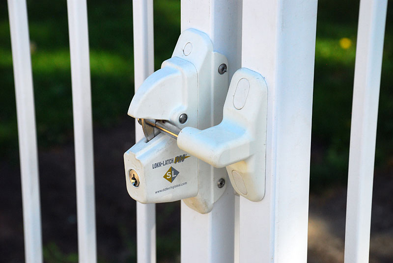 The LokkLatch PRO-SL with strong, molded polymer construction with stainless steel components, takes an innovative approach to the gravity latch principle and combines the unique benefits of key-lockability and reliable latching action with superior design and rust-proof components. The External Access Kit allows the gate to be opened and locked from both sides of the fence.