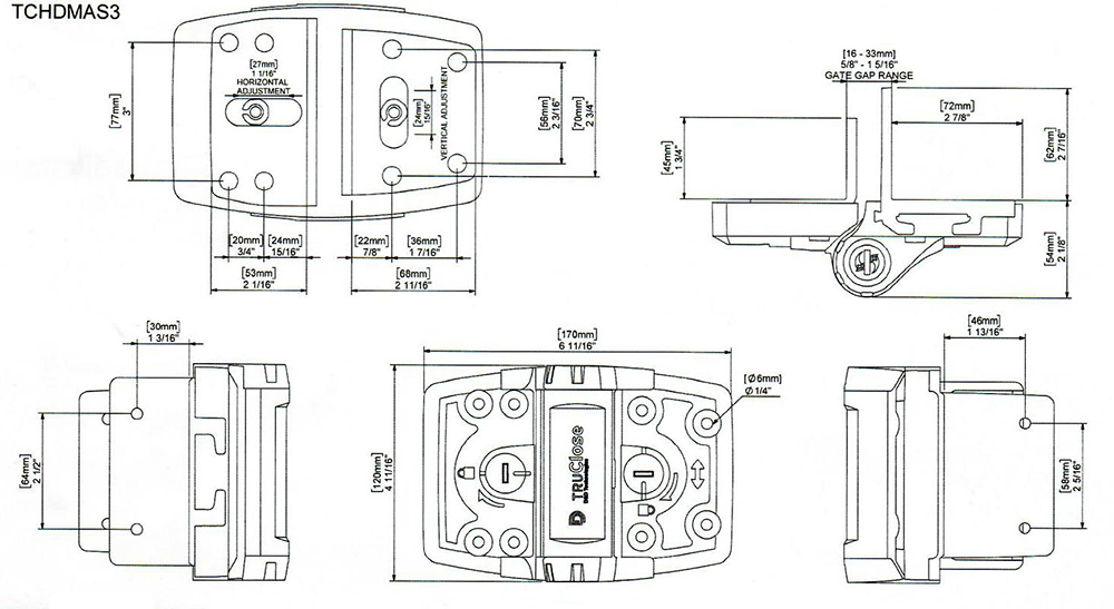 TruClose Multi-Adjust Dimensional Drawings Open Image