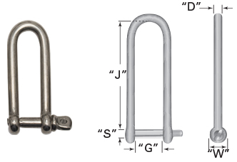 Long Stainless Steel 'D' Screw Pin Shackles  316SS